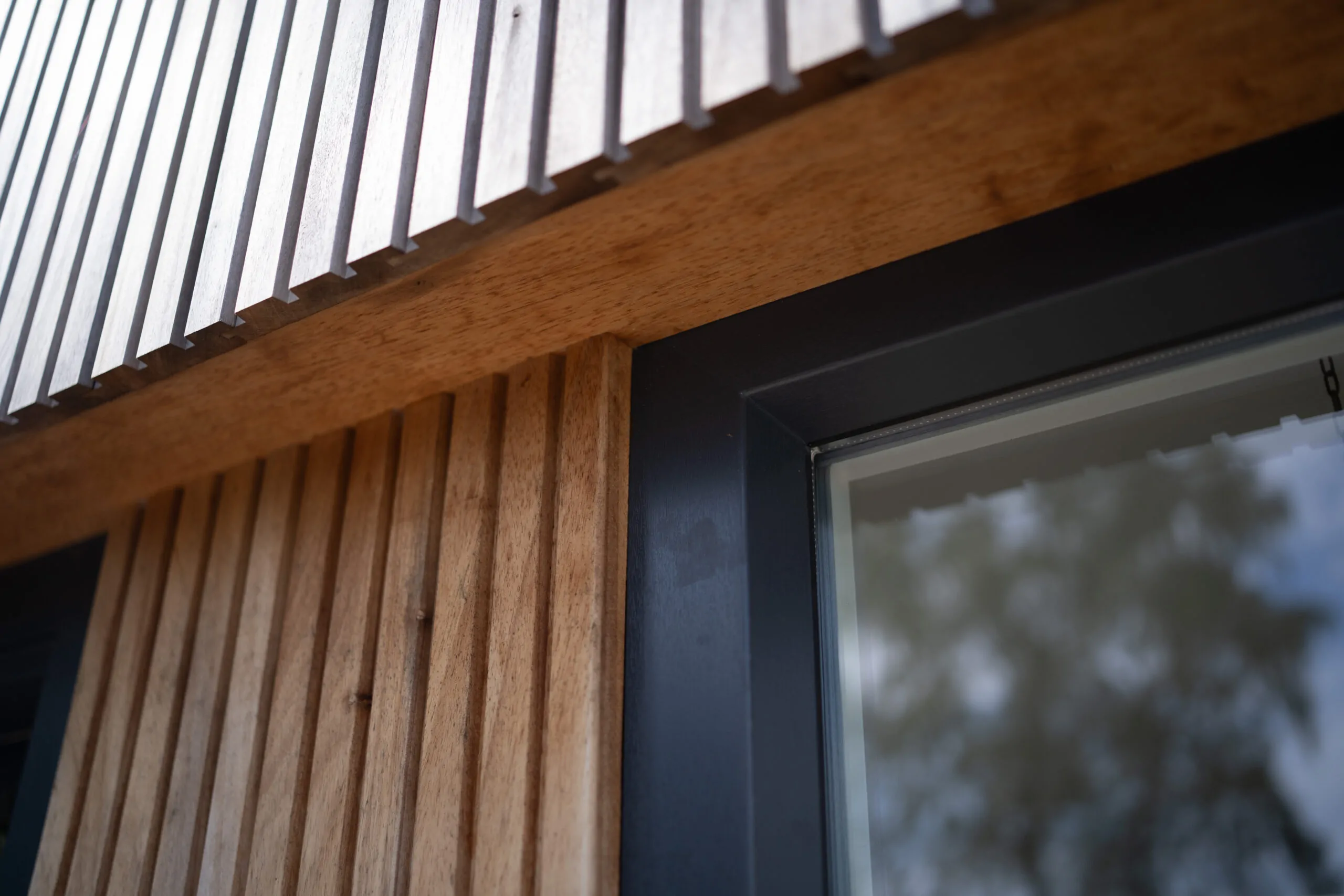 Prachtige houten uitbouw met gedetailleerde afwerking.